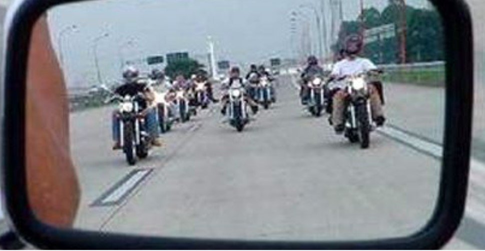 Mas, quando a luz do companheiro não está no seu retrovisor, quando ela não aparece, o Motociclista procura em um espelho, busca no outro e não vê a luz da moto do seu companheiro a sua atenção deixa de ser voltada para sua frente e essa visão muda constantemente olhando para frente, para cada espelho.